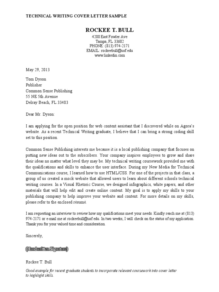 Technical Writing Cover Letter Sample / Do you know how to write a cover letter?